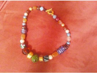 Rachel Goldstein of Rae of Art Designs will create a unique beaded necklace just for you. It will be similar to the necklace depicted in the photo and be a combination of crystals, semi-precious stones, faux pearls and miscellaneous lost and found stones.