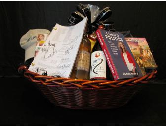 Brothers & Sisters may no longer grace the airwaves, but you can cherish a piece of the show forever with this remarkable assortment of Walker merchandise. The basket consists of a script entitled "The Homecoming" signed by Sally Field, David Anabelle, Calista Flockhart, Matthew Rhys, Patrica Wettig, Luke McFarlane, Gilles Marini, and Rachel Griffiths; DVD sets of Seasons 1-4; a canvas tote bag, an Ojai Food Co. apron, a prop book: Kitty Walker-McAllister A Life in Politics; a prop bottle of white wine labelled Walker Landing Pinot Grigio 2007; a prop bottle of red wine labelled Ojai Coastal Reserves 2009; and a hat with the Brothers & Sisters logo.