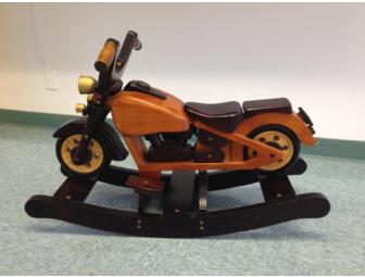 This is an expertly crafted vintage motorcycle rocker made from solid wood. A perfect ride-on toy for hours of fun and imaginative play.