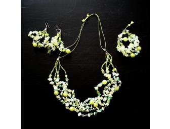 Festive Light Green & White Necklace, Bracelet and Earring Set