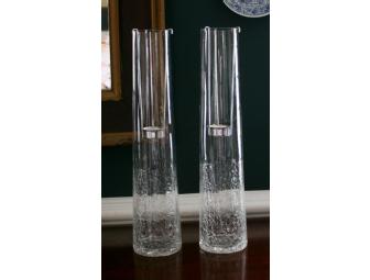 Pair of Crackle Glass Candle Holders
