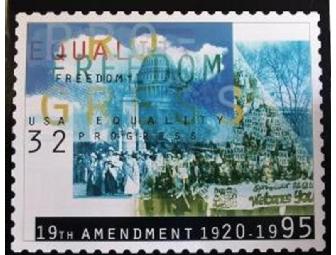 This stamp was issued on August 26, 1995 in honor of the 75th anniversary of the 19th Amendment.