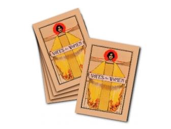 This award-winning design was created by Betha Boye of a western woman posed before the Golden Gate as the sun sets. It was displayed as a poster throughout San Francisco just before the successful October 10, 1911 election.