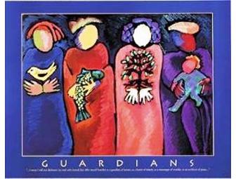 This beautiful poster, showing four female figures in glorious color, calls attention to women's roles as guardians of the earth, children, and animals. 22" x 28