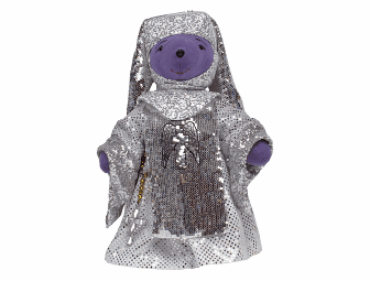 Hallelujah! The sisters of the Holy Order of the Little Sisters of Our Mother of Perpetual Faith are in need of a miracle, and wouldn’t you know it? One comes just in time in the form of Deloris Van Cartier. These ladies raise their voices and sing the praises of the Lord – and look quite fabulous doing it, too. Our ensemble nun bear wears a representation of the costume worn by the entire company in the show’s roof-raising finale. A scapular and tunic of silver sequined fabric with appliqued wings and halo tastefully cover this holy lady and a cross, hand-stitched in silver sequins, adorns her habit. Her sleeves are banded with tiny sequined fabric and her white wimple lays gently under a silver sequined veil, which has been lined in satin. Underneath she wears basic black leather shoes and black stockings. They say nuns respond to a calling and these ladies are calling out to you!. Bid high, bid often and be sure to “Spread the Love Around.”