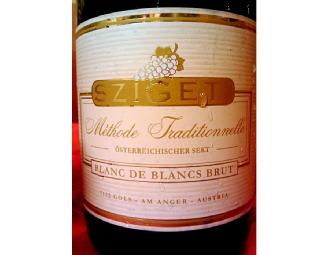 From the famed Szigeti winery, a Methusalah bottle of a special “Adele” cuvee of their Blanc Sekt. The golden label features a portrait by Gustav Klimt of Adele Bloch-Bauer, bought at auction by Ronald Lauder, and hung in pride of place in the Neue Galerie. Glorious Adele can be yours to take home for the right bid!