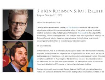 Creativity expert and acclaimed speaker, Sir Ken Robinson challenges the way we're educating our children. He champions a radical rethink of our school systems, to cultivate creativity and acknowledge multiple types of intelligence. Rafe Esquith is the subject of the documentary, "Hobart Shakespeareans," and easily the most inspiring teacher in America. The Richmond Forum is bringing these two experts together for the first time for a thought-provoking and fun look at how to revolutionize our education system. These are great seats in the Orchestra. Donated by Senora Bowden and her husband, Sam.