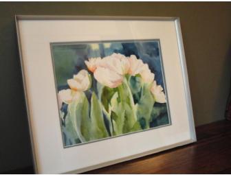 This beautiful framed watercolor of tulips will make you eager for Spring. Jan Morris, the artist, teaches watercolor classes at several Seattle area Community Centers. Picture measures approximately 13 X 10 inches and the frame is 16 X 20 inches.