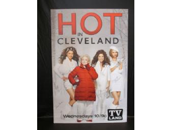 Autographed 24" X 36" poster of the HOT IN CLEVELAND cast sporting winter gear signed by Betty White, Valerie Bertinelli, Wendie Malick and Jane Leeves.