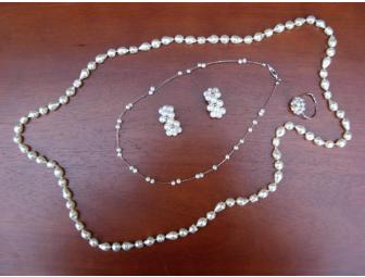 Fun pearly jewelry! Thirty four inch strand strung with varying design beads.