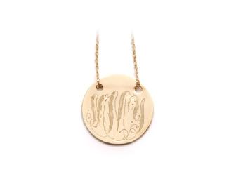 Enjoy a 14 K gold custom, hand engraved Downtown Disc Necklace.
