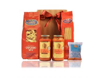 Contains two packages of pasta and a package of cooking salt from the Italian market 'Eataly' in New York City, plus two types of pasta sauce created by Mario Batali - Iron Chef and costar of ABC's The Chew.