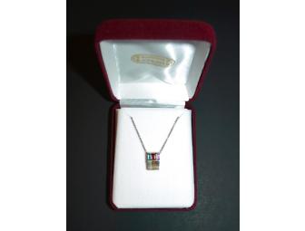 14K white and yellow gold necklace with Genuine amethyst, Garnet and Blue Topaz.