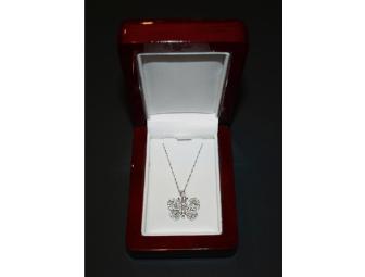 Diamond and Emerald Butterfly Necklace made out of 14K White Gold, diamonds and emeralds.