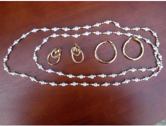 Pearly necklace with gold tone beads connectors is 52 inches long.