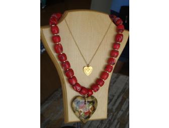 Be the winning bidder on this coral and goldfill necklace with a heart pendant accompanied by a gold heart charm necklace created by Bead It!