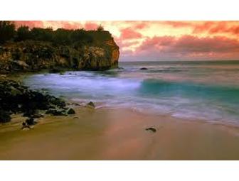 This entitles the bearer to six nights, seven days in a one-bedroom, 2 bath plus loft condo at Poipu Beach, Kauai. Sleeps four in beds and two more using a pull out couch. The condo is fully equipped with full kitchen, linens, TV, wifi, and has beautiful part ocean and full mountain views from our deck. Tennis, several pools, wonderful body surfing beach, horseback riding and scuba near by. Golf next door at a renowned course. Excellent island for hiking, sea life, and botanical gardens.
