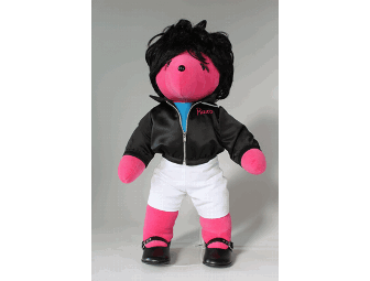 The Pink Ladies don't come any tougher than Betty Rizzo, the sardonic leader of the Rydell High pack. Often dubbed the "original bad girl," Rizzo surely had a heart of gold, even if it wasn't always easy to find. But just one look at our Rizzo bear will make your own heart melt. Inspired by the original 1972 costume design by Carrie F. Robbins, our Rizzo bear is literally a Pink Lady to the core. Rizzo wears white clam digger pants and a turquoise blue sweater under a black satin Pink Ladies jacket, which comes with a working zipper and Rizzo’s name embroidered in matching pink. Maybe there are worse things she could do but she’s the picture of 1950s cool in her black Mary Jane shoes with silver buckles. Her black hair has been styled in a period 'do reminiscent of Tony Award-nominee Adrienne Barbeau’s original look when the show opened at the Eden Theatre. You and this Rizzo bear go together and that's the way it should be.