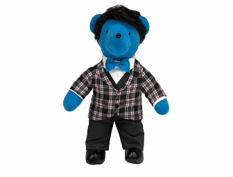 Everyone can take a few lessons on how to succeed from this young up-and-comer. From window washer to chairman of the board, J. Pierrepont Finch makes a quick accent, rising to the top of the World Wide Wicket Company. The Finch bear wears a replica of Daniel Radcliffe's complete opening outfit from the 2011 revival of How to Succeed In Business Without Really Trying. Under his removable green poplin coveralls is a woven cotton three-piece suit with dark grey trousers and vest. He is ready for anything that comes his way in his sharp white linen shirt, all topped with a gray and white plaid jacket. Finch also wears black ankle boots made of real leather and adorned with a dark brown wig styled ideally for the 1960s executive. This bear also comes with unique accessories. Daniel Radcliffe, who originated the role in the 2011 revival, provided his trademark blue bow tie. The two subsequent leading men taking on the role – Darren Criss and Nick Jonas – have added their own smartly colored bow ties, too. So this Finch bear comes with bowties in all three colors, each attachable with magnets. No matter which bow tie you choose, this heartthrob will be dressed for success!