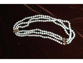 Triple Strand Aquamarine & Sterling Necklace with Matching Earrings