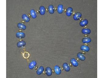 Stunning blue ceramic necklace purchased from Nordstrom. Beads feature small specks of gold. Necklace has a gold lobster clasp and measures 18 inches long.