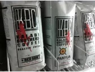 Locally roasted using unique air-roasting techniques, Kaladi Coffee delivers a precise roast of coffee. Kaladi prioritizes coffees that are shade grown and fair trade, representing relationships they maintain with coffee growers worldwide, One pound each month to be picked up at the store. No shipping. Excludes Kona.