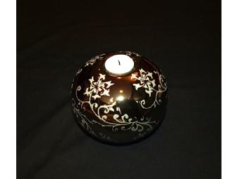 European round metal tea light. 5 1/2" diameter; 5" tall