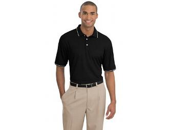 Nike has engineered a sport shirt that takes comfort to the next level. The Dri-FIT fabric gives superior moisture management, while the stitch-trimmed shoulder panels and gussets make a distinctive difference. Features a three-button placket flat knit collar and cuffs and 3-button placket. The contrast Swoosh design trademark is embroidered on the left sleeve. Made of 4.7-ounce, 100% polyester Dri-FIT fabric. Pearlized buttons are selected to complement the shirt color.