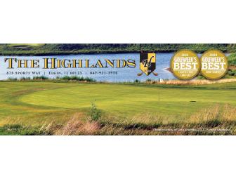 With this package you receive a foursome of golf, with cart, at the Highlands of Elgin Golf Course & a $10 Gift Card from Golfsmith.