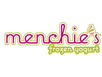 Menchie's Swag Bag including: Large Gray Logo T-Shirt, Dodgeball, 4 Pencils, 1 Ball-Point Pen, 1 Lip Balm, 1 'Sweet Friends' Sticky Head, 1 Picture Frame Magnet, 3 Buttons, Stickers, Tattoos, and 5 Coupons for a Free 4 oz. Yogurt (Encino Location Only).