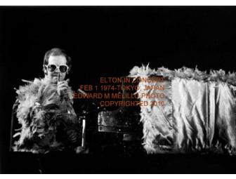 Are you still standing? Then here's your chance to take home this photograph of Elton John in Concert, taken on Feb 1, 1974, by photographer Edward M. Melillo during Elton John's "Yellow Brick Road" tour at the Budokan (concert hall on the Emperor's palace grounds) in Tokyo, Japan. The photograph is a 13"x 11" framed wood canvas photo, Limited Edition #0115/1111, signed by the photographer (copyrighted 2010).