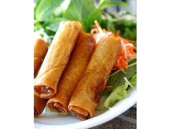 Treat yourself to 50 mouth-watering homemade Vietnamese Eggrolls made by Vy Donnelly. Great as a party appetizer or enough for a dinner for eight. Also makes a fast, easy, and delicious week-night dinner option -- stick them in the freezer until ready to use, then pop them in the oven when ready. Choice of pork or turkey.
