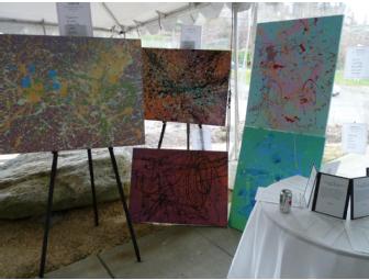 Mrs. Anderson's class projects represent her kindergarteners' personal interpretations of Jackson Pollock's famous splatter art. Each small group of students is given free reign over a blank canvas. Together they work with paint to cover, blend and splatter until they feel their masterpiece is complete! Each piece is unique, complicated, messy, beautiful and creative, just like those kindergarteners.