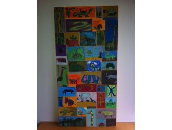 Fun and wild -- take home these colorful canvases filled with pastel animals drawn by the kids of Ms. Thomas' first grade class. A great way to brighten up a child's room or playroom! Sure to draw smiles for years to come.