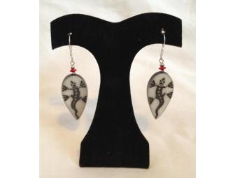 Handmade by the talented Robolino artisans in Ecuador, these distinctive earrings embody the richness of the rain forest. Teardrop shap, carved with a rainforest lizard motif, and accented by red tagua and sterling silver bead, these earrings are simply gorgeous.