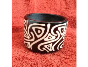 Small bowl, approx. 3" x 3", for home decor. Note the other auctions in this same distinctive style: smokey black and white ceramics, hand-made in Peru, purchased in the Mercado Artesanal la Mariscal in Quito Ecuador.