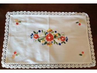 From the Bordados Zuleta Fair Trade cooperative in Ecuador, this beautiful table runner is exquisitely embroidered. See the detail! The image with the label shows the embroidery from the back, so you can confirm the quality of the work. Size is approx. 18" x 12" to enhance and beautify a surface in your home, as well as support fair trade in Ecuador.