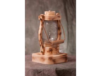 A aged wood/mason jar working lamp handmade by a Menonite gentleman.
