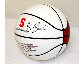 This limited edition basketall is hand signed by Syracuse University's Hall of Fame Men's Basketball Head Coach, Jim Boeheim. The basketball features the Block "S" logo as well as some of Coach Boeheim's many accomplishments.