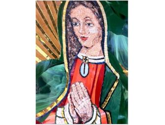Local artist and long time Leucadia resident Mark Patterson created the 10-by-10-foot mosaic to send people a message about why they should protect the ocean. His piece depicts the Virgin of Guadalupe as a surfer, and down one side of the mosaic are the words, "Save the Ocean."