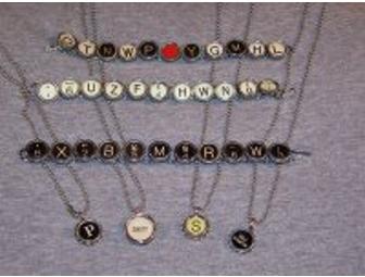 This collection is from Bead of a Different Drum by Nancy Maize. The items are crafted from recycled material & no two are alike. The money clip has a raised circle with a map, cuff links & earrings are CTA bus tokens, & the necklace is on a silvertone bead chain with a map of Logan Square. Enjoy this beautiful, one-of-a-kind set.