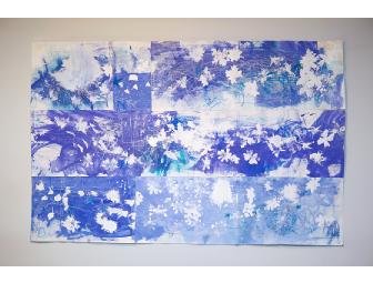 53" x 34" Made with tempra paint, oil pastels, chalk pastels, and stamps.