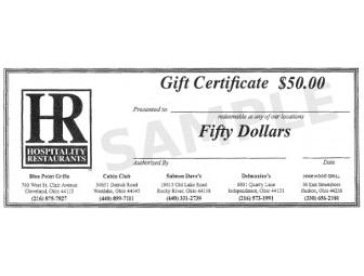 Hospitality Restaurant $50 Gift Certificate