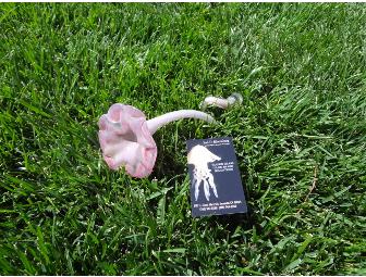 Artist Joel Bloomberg created this beautiful blown glass Iris. This flower has a twisted stem. Lilac and green glass make this a beautiful piece of art. It measures approximately 8 inches in height and flower has an approximate 3 inch diameter. Makes a beautiful Mother's Day gift.