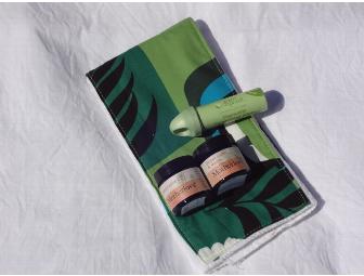 This Kit includes two Motherlove products, green salve(1oz), and diaper rash & thrush(1oz), Green Sprouts Compressed Wipes (10 pieces) and a burp Cloth in a Mod Green Jungle pattern.
