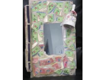 Charming hand-made mosaic mirror. This original piece was produced by Loring Cornish, a self-taught visionary artist who is one of Baltimores art stars, best known for his exquisitely tiled home and studio on Parkwood Avenue in Druid Park.