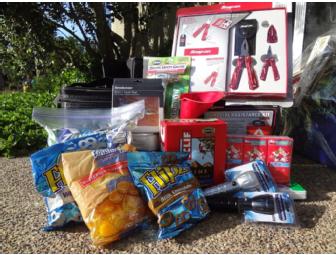Ride out the next disaster in luxury. Live it up with this well thought out Emergency Car Kit. Everything you would need in an emergency or pickle in a black collapsible trunk organizer.