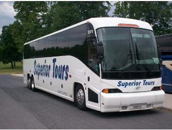 Looking to get out of town for a bit? Take a ride with Superior Tours to the Big Apple. This Certificate entitles the bearer to 2 round trip tickets to New York City from Baltimore. Whether it's a school field trip, corporate outing, a family adventure, or a youth group trip let Superior Tours help you plan the perfect trip for you!