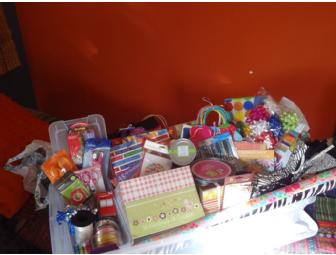 - Small Shoe box Tote full of 5 Rolls of Tape, Hole Punch, Scissors, Specialty Edge Scissors and a gift wrap cutter