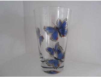 Set of 8 tall drinking glasses beautifully handpainted with blue butterflies selected by Mongrel for the Mary Munford Monarchs! If you enjoy the fun and eclectic items at this wonderful Carytown store, you'll love these glasses.